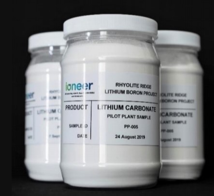 High-quality technical-grade (>99%) lithium carbonate samples ready for shipping. Photo credit Ioneer July 25, 2020 443 × 404