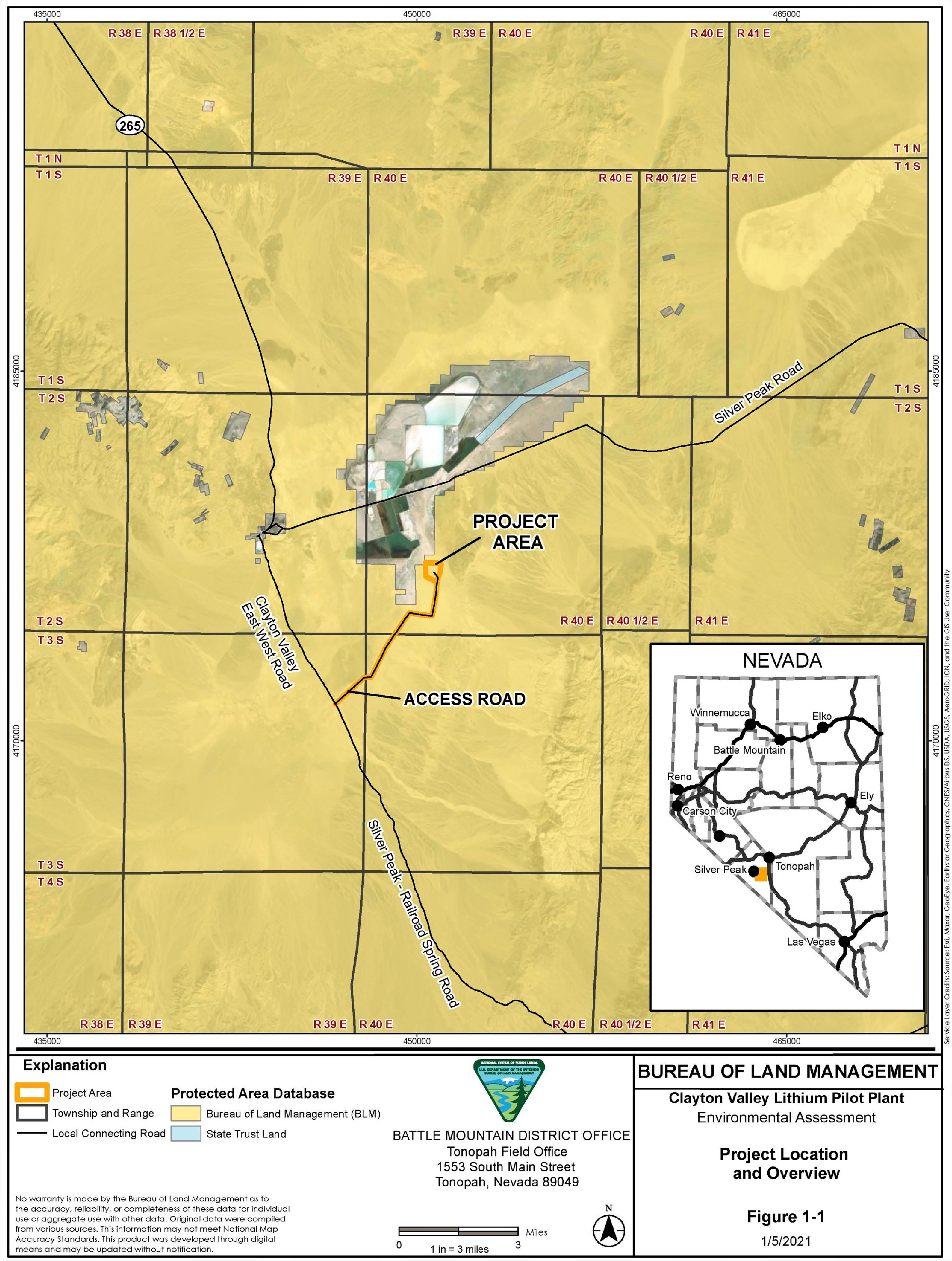 Feb. 16, 2021 BLM – Pure Energy Clayton Valley Lithium Pilot Plant Location and Overview 1-1 April 24, 2021 2959 × 3919