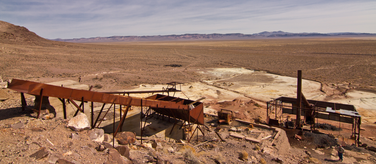 If you are driving on Nevada State Route 267 around Bonnie Claire, the first thing you will notice is the large metal mill building that is still standing on the north side of the road. And there are also a handful of smaller buildings and structures scattered around the mill.