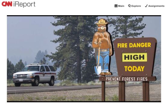 Markleeville is an extremely popular summer tourist destination for all kinds of outdoor recreation. Most summer mornings would find the cafes, stores, art shops and coffee houses filled with visitors. This morning the smoky heart of the town was more like a ghost town with only a couple residents outside the post office talking about the fire. The café was open but did not have any customers at the time. Highway 89 is closed just south of the café at the edge of town.
