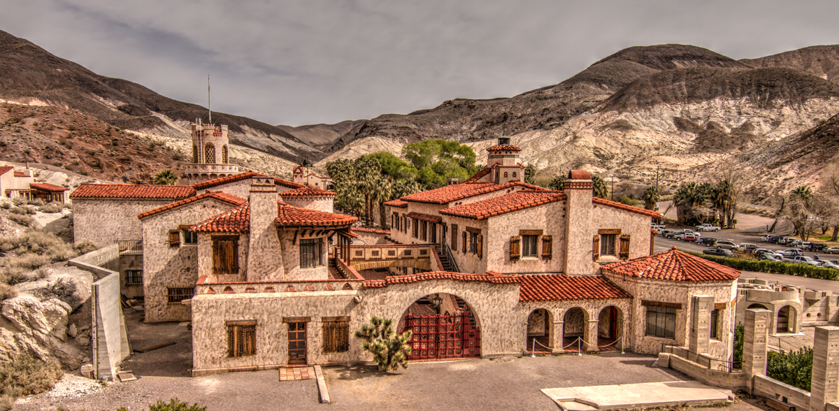 Death Valley Ranch, also known as Scotty’s Castle, is nestled in the green oasis of Grapevine Canyon at the north end of Death Valley. The castle reflects the changing and challenging times of the 1920s and 1930s.