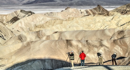 Death Valley National Park is a photographer’s dream. Here several line up to capture their perfect sunrise photo at the eroded and uplifted hills of Zabriskie Point.