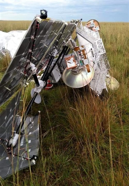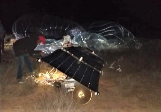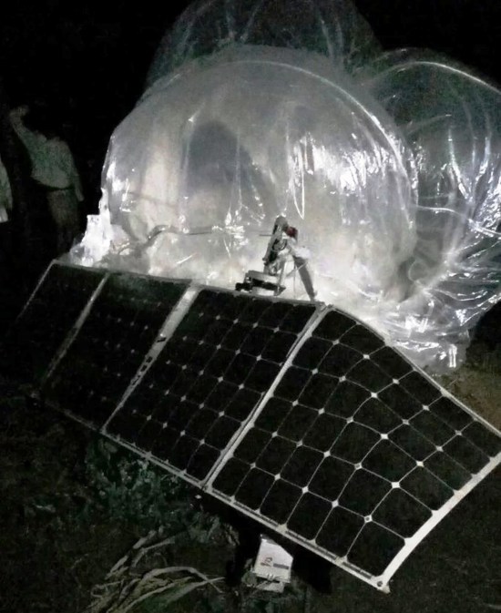 Photo courtesy of Dennis Dibondo, The Star Kenya – Dec. 31, 2017, Residents of Nthambiru, Igembe South constituency were marveled Friday night when a Google high attitude internet transmission gadget fell from the sky and landed on a miraa farm. Witnesses said those who went too close to the object complained of headaches. This balloon, 018, was launched Sept. 13, 2017, from Winnemucca, Nevada.