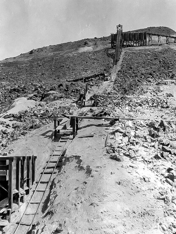 BOM 12A April 4, 2013 576 × 766 in Photo Gallery Grand View Mine, laying track from Ryan 1915 – Courtesy National Park Service, Death Valley National Park